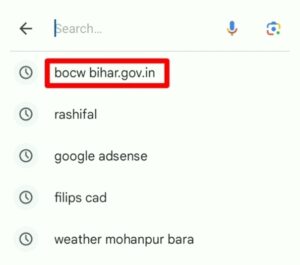 सबसे पहले आपको अपना मोबाइल में क्रोम ब्राउज़र को ओपन कर लेना है ओपन करने के बाद आपको सर्च करना है Bocw bihar.gov.in सर्च कर लेना है कुछ इस तरह से
